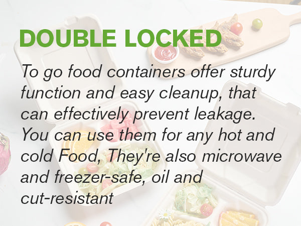 - 6 / 8 / 9 in Clamshell Durable Leak-Proof Sugarcane To Go Boxes: Perfectly complements your To Go Boxes, providing additional options for various meal sizes while maintaining sustainability.