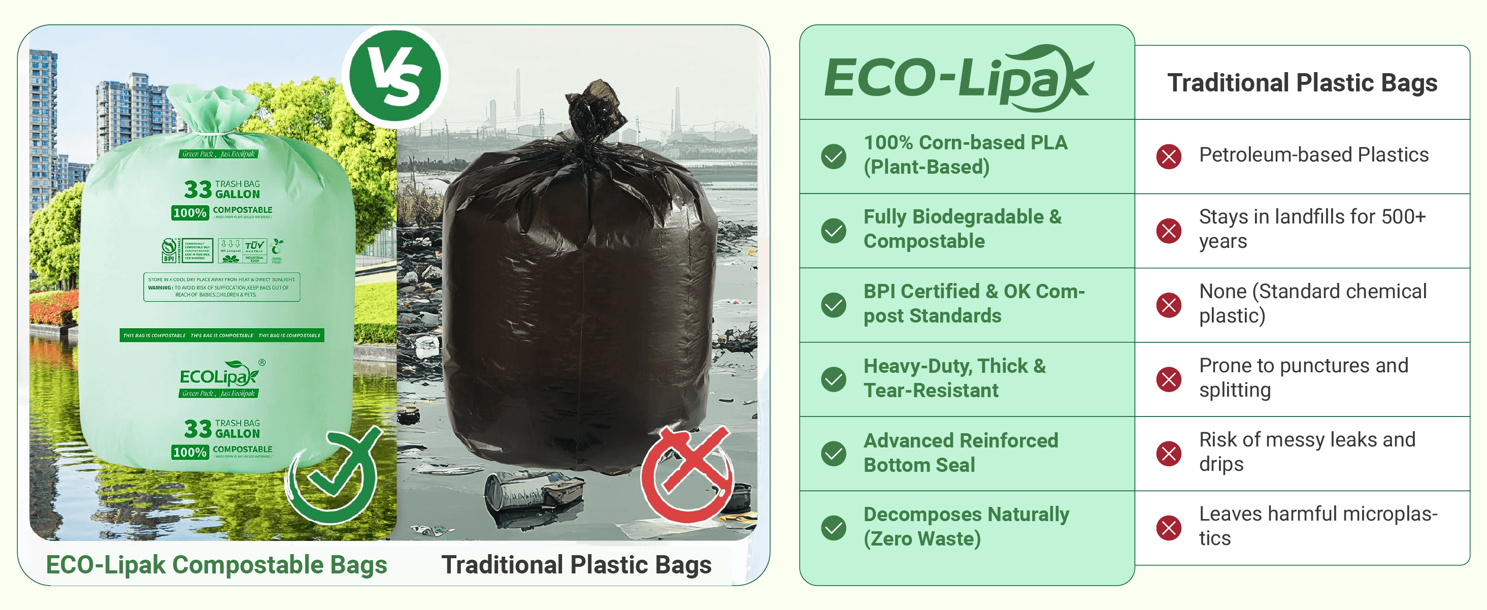 Whether you’re tidying up after a family gathering or managing yard waste, ECO-Lipak’s compostable trash bags make cleanup effortless and guilt-free. Their durable design ensures they can handle tough jobs without compromising on sustainability.