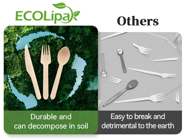 Enjoy every meal sustainably with ECO-Lipak's Compostable Splinter-Free Wooden Fork, Knife & Spoon Cutlery Set. Perfect for busy weekdays or weekend picnics, these BPA-Free, non-toxic utensils make dining effortless while supporting a healthier planet. Every meal becomes a small step toward a sustainable lifestyle.
